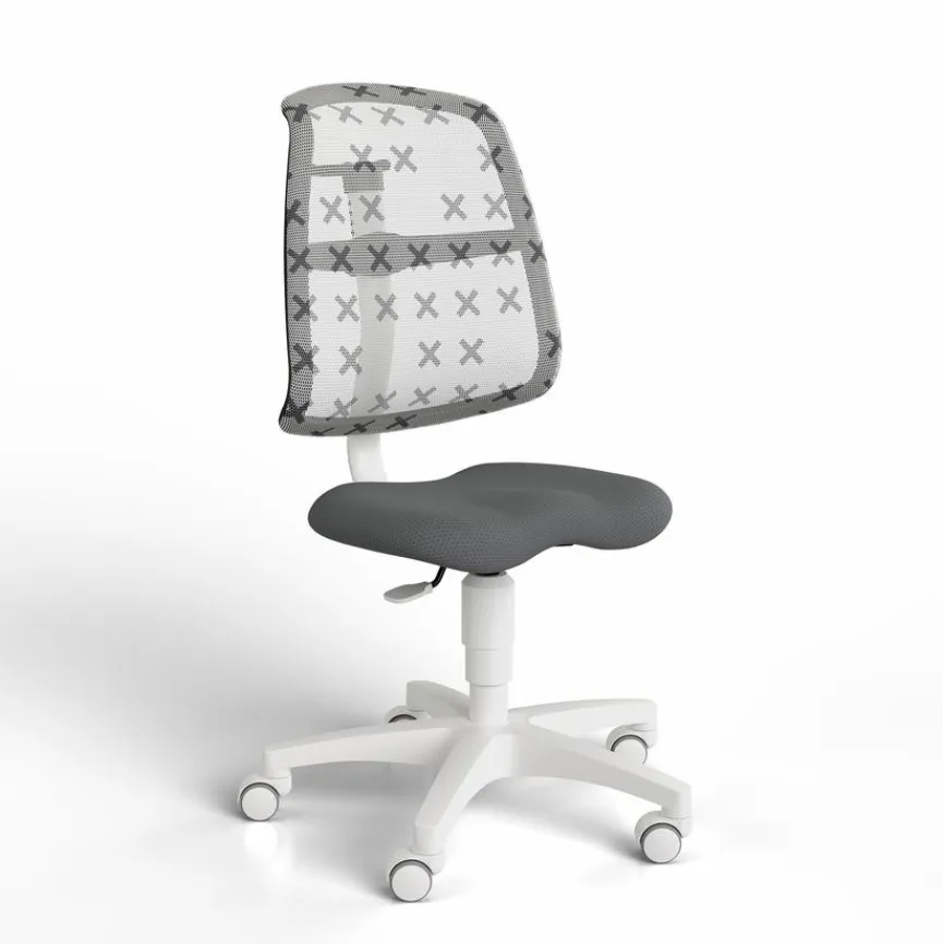 - Sitzbezug aus Stoff in grau, Rückenlehne mit atmungsaktivem Netzbezug in grau mit in „X“ in grau