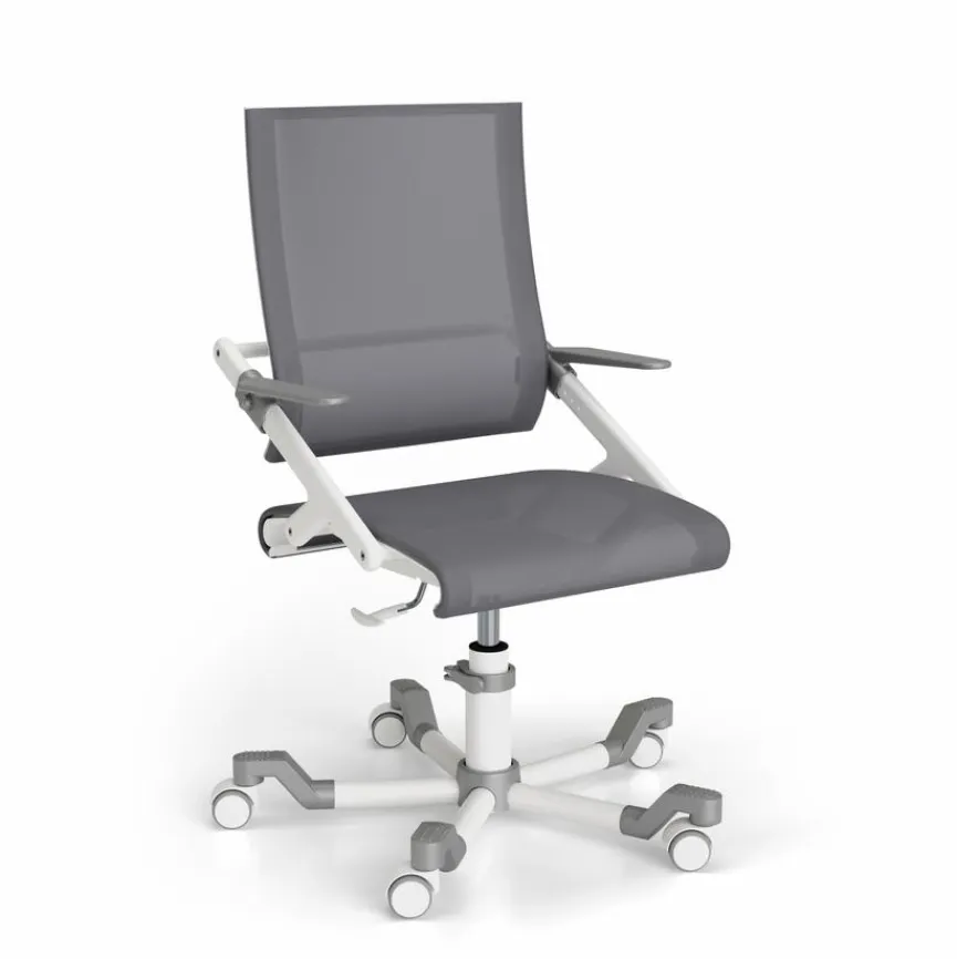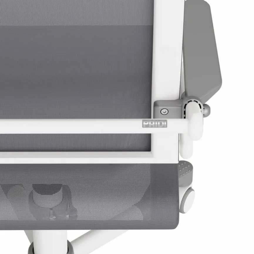- Sitztiefe und Rückenlehne gemeinsam durch Positionierung der Armlehnen in 9 Stufen verstellbar