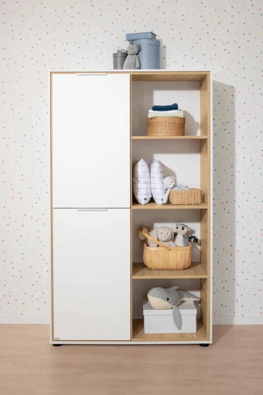 - Mit 2 Türen links, mit 4 offenen Fächern rechts