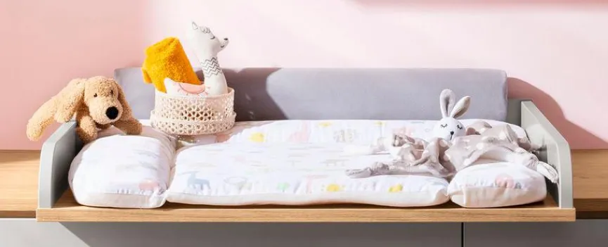 Platzieren Sie den Wickelaufsatz Benne von Paidi schnell und einfach auf der Kommode und wandeln Sie Ihr Möbelstück in einen Wickeltisch um. Der Wickelansatz erweist sich damit nicht nur als funktional, sondern spart Ihnen auch viel Platz ein. Auf dem Wickelaufsatz Benne aus dem Hause Paidi finden zudem problemlos die Windeln, der Babypuder und die Feuchttücher einen Platz.
