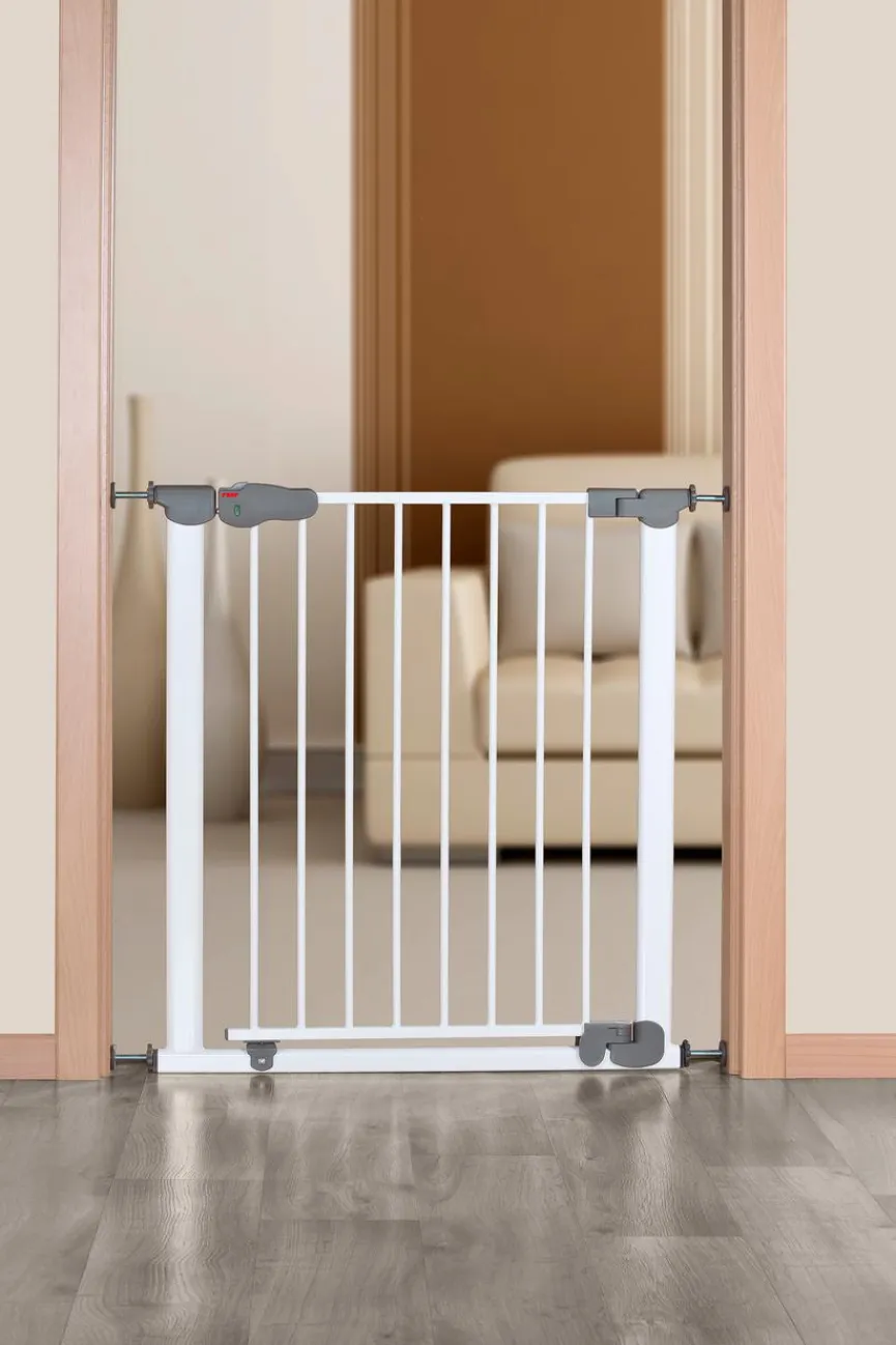 - Für Durchgänge von 77,5 – 83,5 cm geeignet, mit der optional gegen Mehrpreis erhältlichen Verlängerung 4x erweiterbar bis 111,5 cm, Türgitter geeignet für Kinder bis 24 Monate, Inkl. 1 fluoreszierenden Leuchtschiene