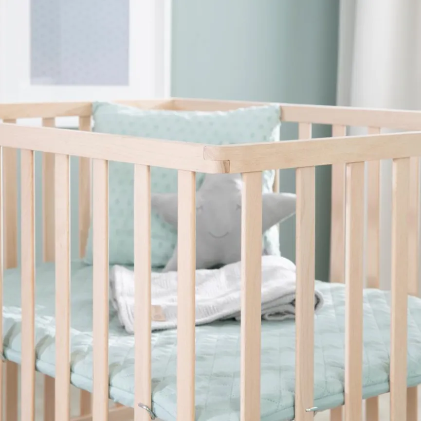 - Aus massiver und natur lackierter Buche, Liegefläche aus Holzwerkstoff (MDF) mit Bezug aus Stoff in grün