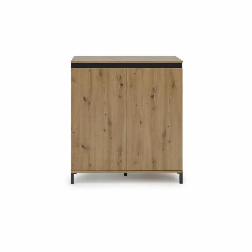 Die Kommode Genio vereint Ästhetik und Funktionalität auf einzigartige Weise. Hergestellt aus hochwertigem Holzwerkstoff mit kratzfester Melaminharzfolie überzeugt sie nicht nur durch ihr ansprechendes Design, sondern auch durch ihre Robustheit. Die wechselseitige Blende verleiht der Kommode einen modernen Touch. Mit 2 Türen und 2 Einlegeböden bietet die Kommode Genio ausreichend Stauraum für Ihre persönlichen Gegenstände.