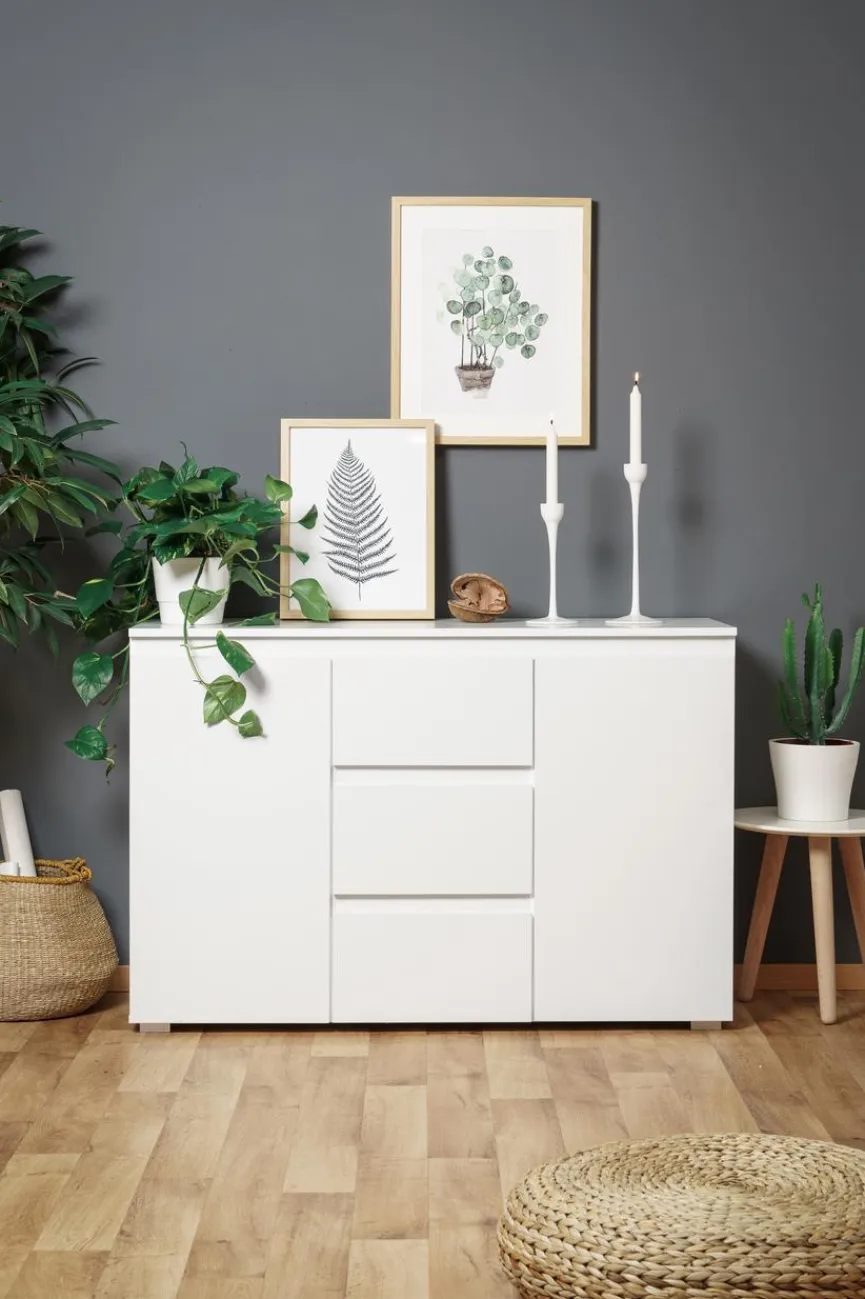 Die Kommode Image präsentiert sich in einem schlichten Design mit zurückhaltender Farbgebung und gerader Linienführung. Daher lässt sich das praktische Möbelstück mit den unterschiedlichsten Einrichtungsstilen kombinieren und ist auch hervorragend im Büro einsetzbar. Auf der Deckelplatte der Kommode Image können Dekorationen und Blumen stilvoll in Szene gesetzt werden.