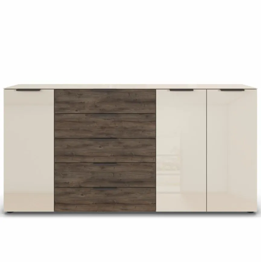 - Korpus aus Holzwerkstoff (Spanplatte) mit hochwertigem Dekor-Druck in Champagner