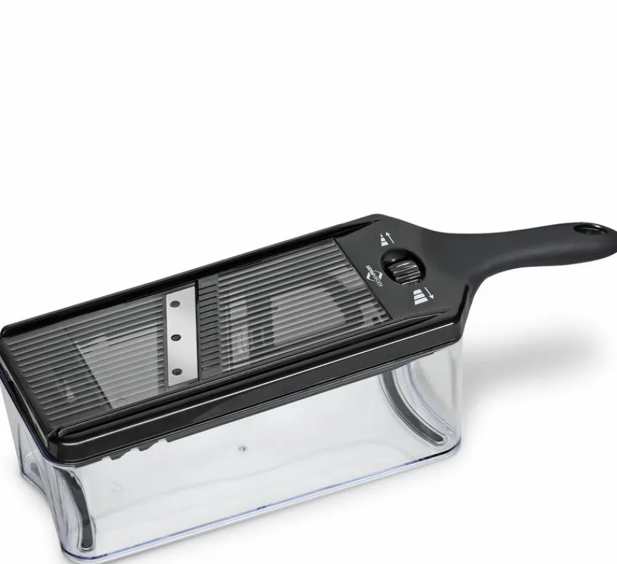 Erleichtern Sie sich die Arbeit in der Küche, indem Sie den Gemüsehobel Compacto von Küchenprofi verwenden. Das praktische Utensil ist mit zwei Messereinsätzen ausgestattet und zerkleinert Karotten, Gurken, Sellerie und Co. effizient. Dank des transparenten Auffangbehälters, in dem die geschnittenen Nahrungsmittel gesammelt werden, trägt der Gemüsehobel Compacto auch zu einer sauberen Arbeitsfläche bei.