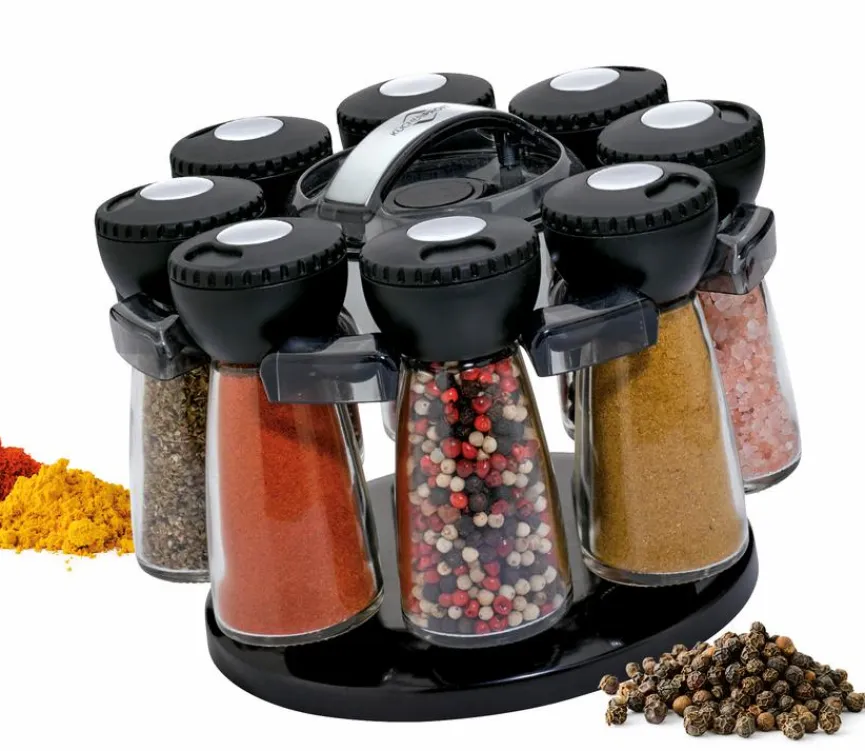 Mit dem Gewürzkarussell Ø 20 cm haben Sie alles griffbereit, was Sie zum Würzen Ihrer Lieblingsgerichte benötigen. Im Handumdrehen entnehmen Sie die perfekte Dosis bereits gemahlenen Pfeffers, Kurkuma- oder Paprikapulvers. Bewahren Sie in den Gläschen in Ihrem Gewürzkarussell Ø 20 cm zur weiteren Verarbeitung beispielsweise auch Pfefferkörner, Knoblauchflocken oder Kristallsalz auf.