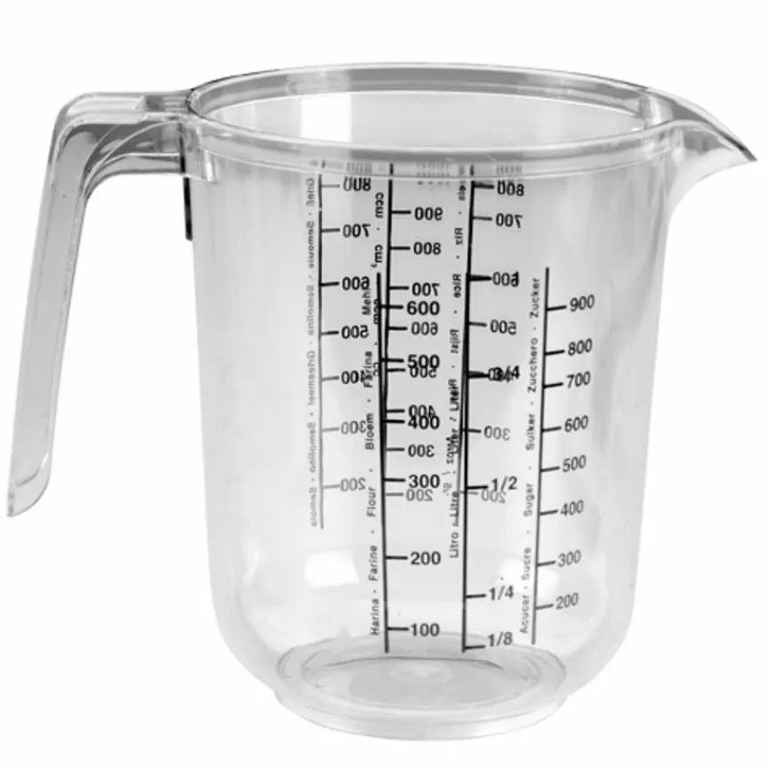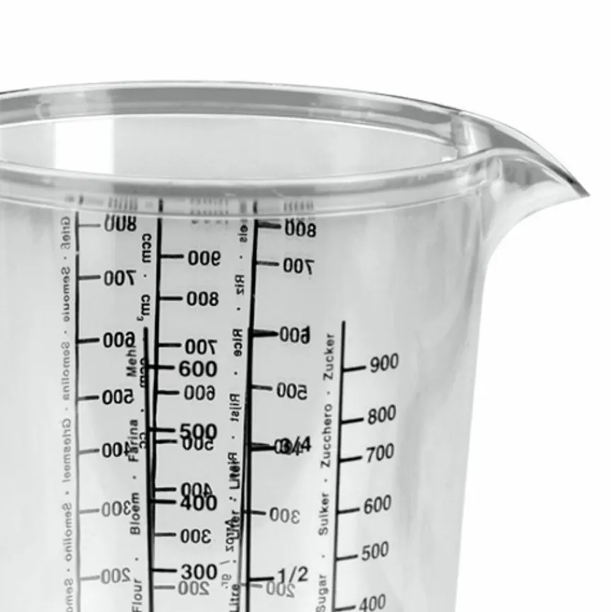 Mit dem Messbecher 1000 ml können Sie im Handumdrehen flüssige und feste Zutaten dosieren, denn die verschiedenen Skalen bieten Ihnen alle gängigen Größen. Außerdem lässt er sich dank seines großen Volumens sowie des praktischen Tragegriffs überall im Alltag einsetzen. Der Messbecher 1000 ml ist einfach zu reinigen, und die Ausgusshilfe erleichtert Ihnen die optimale Dosierung.