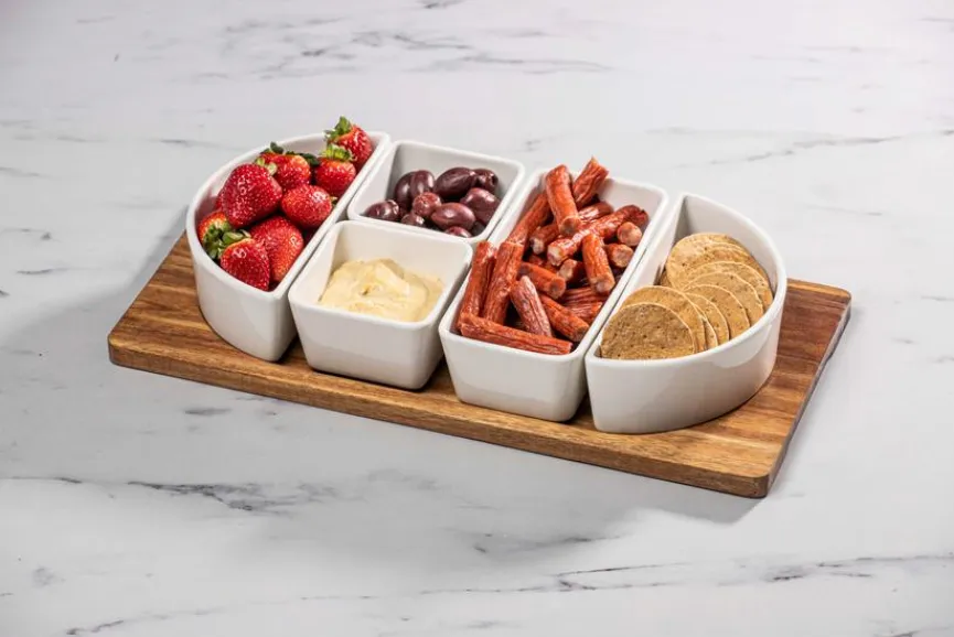 Mit dem Servier-Set Alto 44,8×21,2 cm von ladelle wappnen Sie sich für die nächste Party in Ihrem Zuhause oder in Ihrem Garten. Befüllen lassen sich die kleinen Schälchen mit Dips, Antipasti, Nüssen und mehr. Auch als charmantes Geschenk ist das Servier-Set Alto 44,8×21,2 cm natürlich eine wunderschöne Idee.