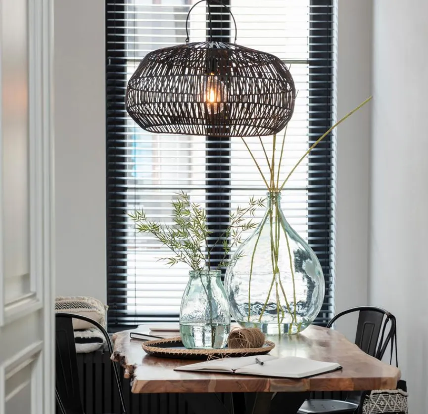 Die Marke DAHEIM präsentiert mit dem Lampenschirm Rattan schwarz M ein qualitätsvolles Accessoire, das eine feine Flechtstruktur aufweist und aparte optische Akzente setzt. Dank der semitransparenten Gestaltung können Sie sich über dekorative Lichteffekte freuen. Verschönern Sie mit dem ansprechenden, robusten Lampenschirm Rattan schwarz M von DAHEIM Ihr Zuhause und verleihen Sie ihm eine gemütliche Note.