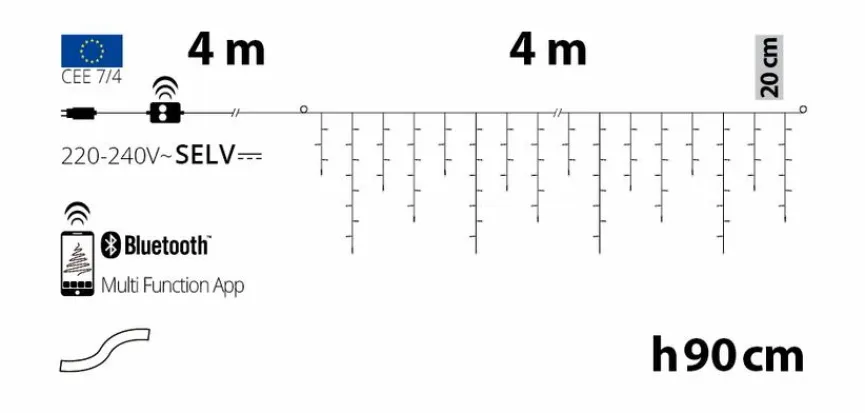 Mit der LED-Lichterkette Eisregen Appy 125 von Appy können Sie märchenhafte Leuchteffekte am Dach, am Balkon oder an einem Geländer schaffen. Auch drinnen erzeugt sie eine magische Atmosphäre. Nicht nur zur Weihnachtszeit, sondern auch bei anderen Gelegenheiten wie Gartenpartys oder Hochzeiten trägt die LED-Lichterkette Eisregen Appy 125 zu einer feierlichen Stimmung bei.