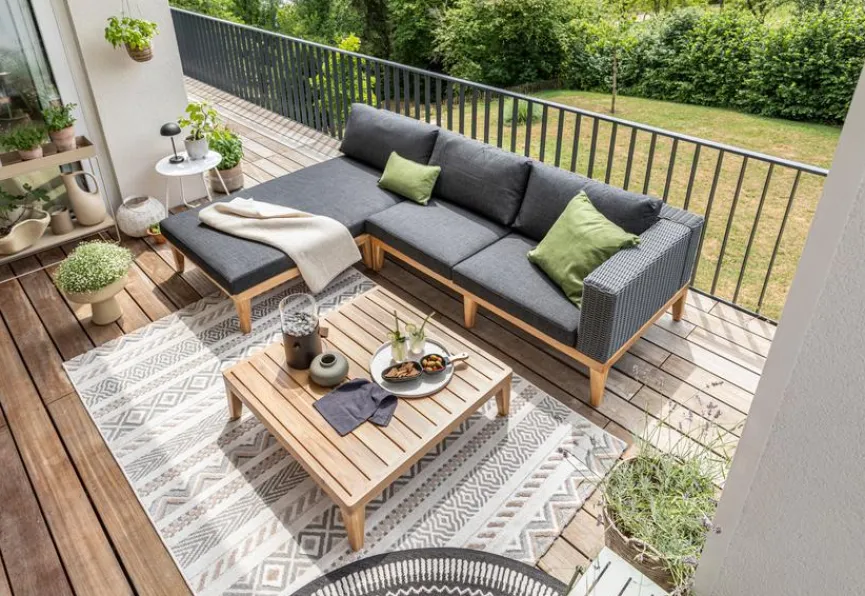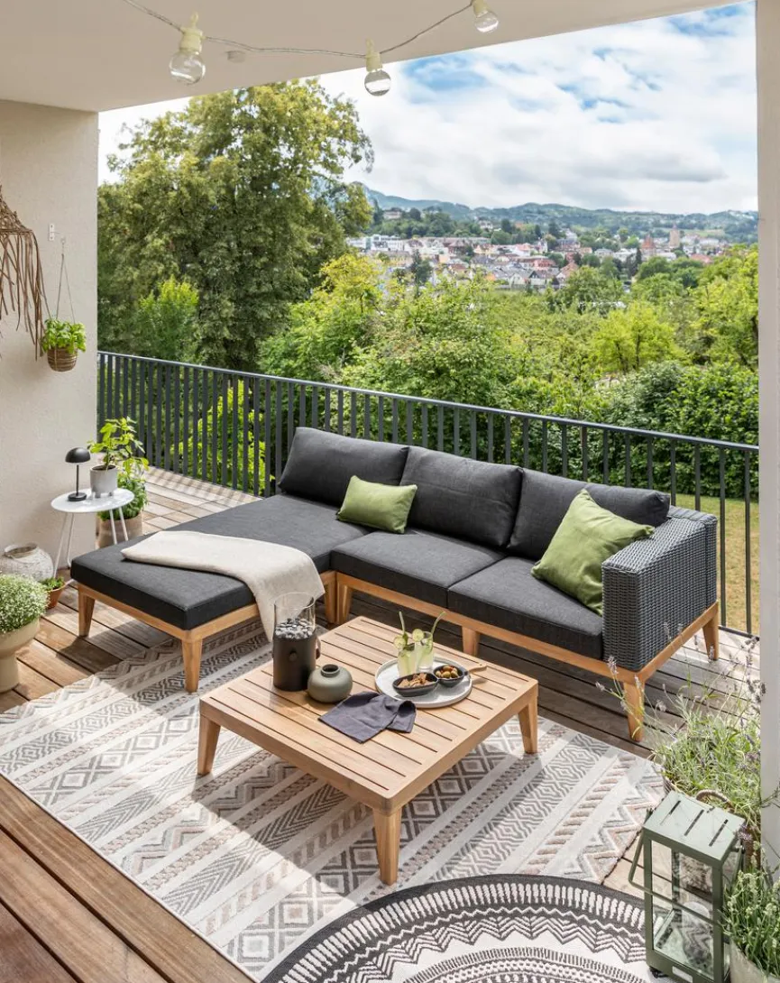 - Tisch aus Akazienholz in „Used“ Teak Look, ist im Lieferumfang enthalten aber nicht auf dem Bildern abgebildet
