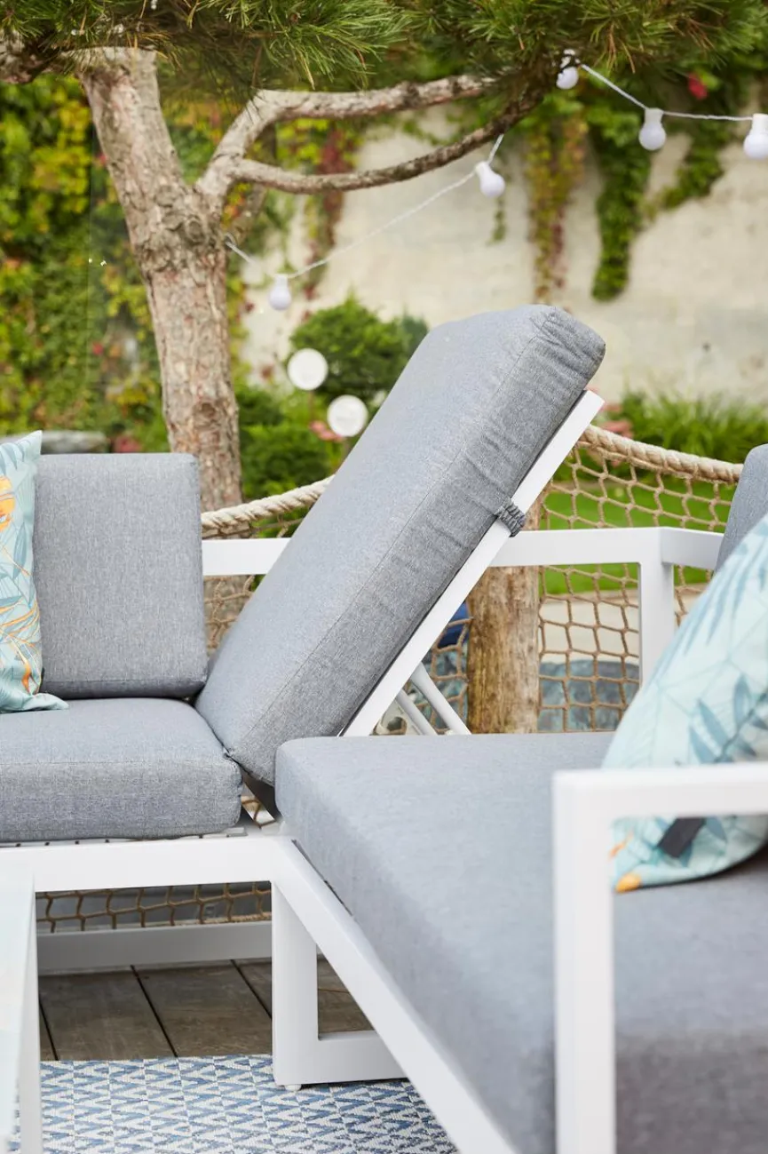 - Inkl. 2x Sitzkissen und 6x Rückenkissen aus Schaumfüllung, Liegefunktion stufenweise verstellbar