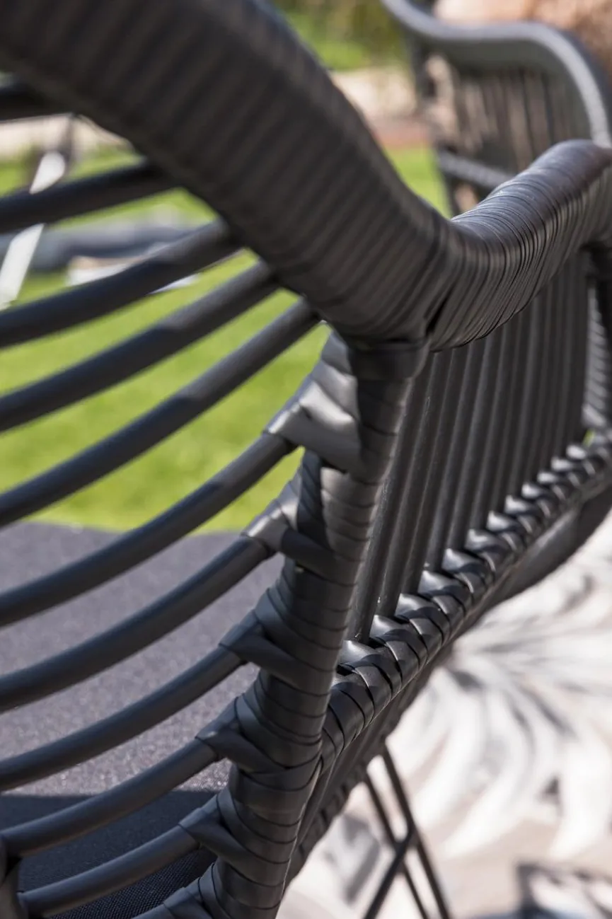 Der Gartensessel Tonga, PE-Geflecht verleiht Ihrem Balkon oder Ihrer Terrasse eine individuelle Note. Sowohl das Gestell, als auch der Sitz besitzen einen modernen Look. Der Gartenstuhl lädt zum gemütlichen Verweilen im Freien ein. Kombinieren lässt sich der Gartensessel Tonga, PE-Geflecht mit Tischen aus verschiedenen Materialien, beispielsweise aus Holz.