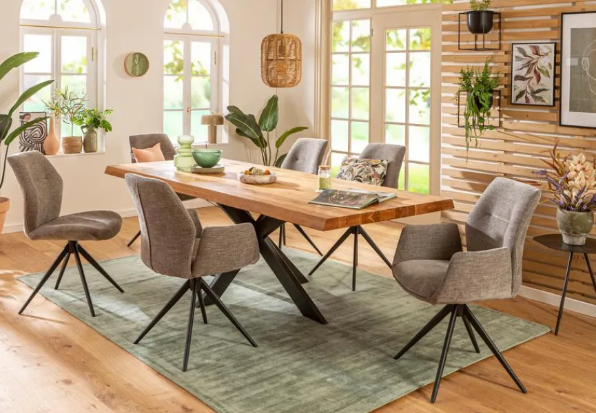 Seine Form-Material-Kombination verleiht dem Esstisch Fresno 240×100 cm eine zeitgemäße, warme Ausstrahlung. Dieser Esszimmertisch bietet ausreichend Platz für gesellige Mahlzeiten mit der Familie oder mit Freunden. Je nachdem, welches Gesamtbild Sie Ihrem Speisezimmer geben wollen, lässt sich der Esstisch Fresno 240×100 cm mit Polster-, Holz- oder Metallstühlen kombinieren.