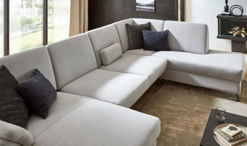 - Wohnlandschaft besteht aus Longchair mit Armlehne links (70102), 2,5-Sitzer ohne Armlehne (02002) und Anbausofa groß mit offenem Abschluss rechts (70185)
