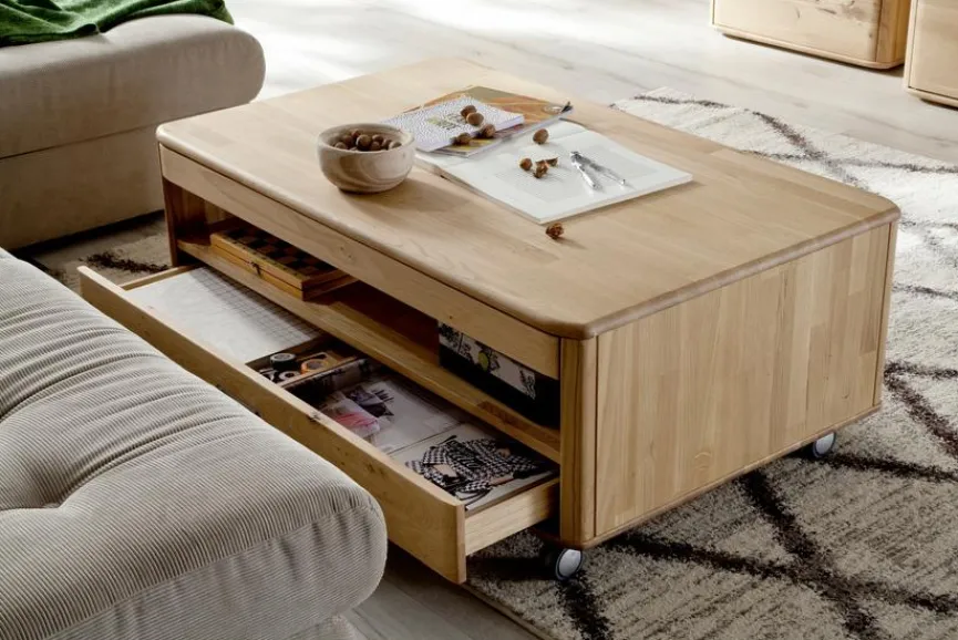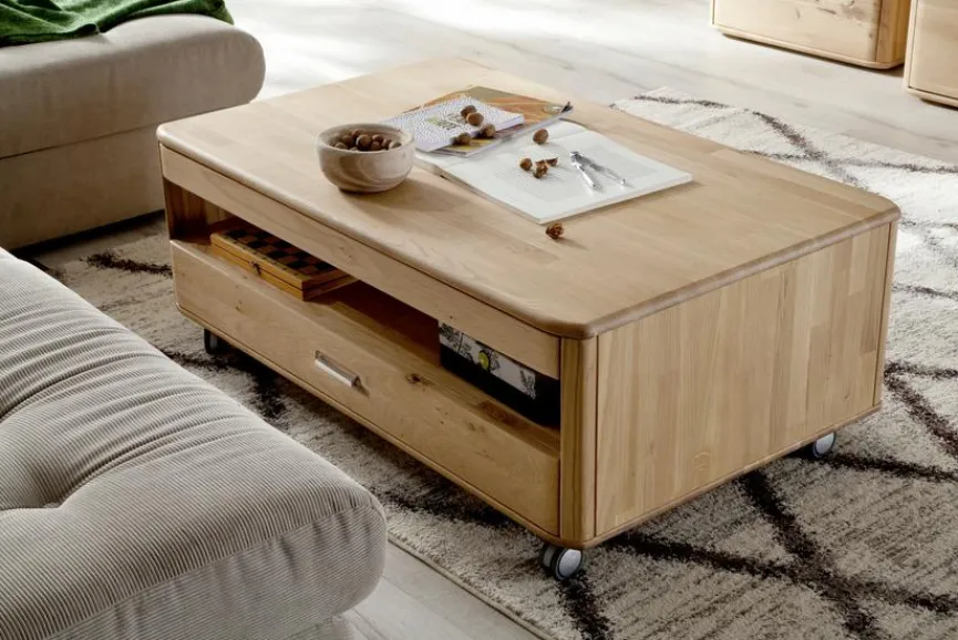 Aufgrund seiner natürlichen Materialien sorgt der Couchtisch Ravello der Marke MCA in Ihrem Wohnzimmer für ein angenehm rustikales Ambiente. Außerdem ist der Wohnzimmertisch von MCA durch seine Rollen extrem mobil und bietet darüber hinaus viel Platz für sämtliches TV-Zubehör und andere Dinge. Damit der Fernsehabend nicht gestört wird, verfügt der Couchtisch Ravello zudem über eine Türdämpfung, die ein geräuschloses Öffnen und Schließen der Türen ermöglicht.