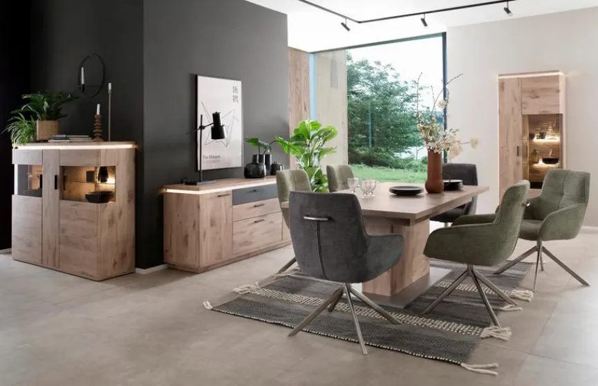 Der Esstisch Modena von MCA vereint zeitloses Design mit moderner Funktionalität. Mit seiner klaren Formensprache strahlt der Esszimmertisch Eleganz und Beständigkeit aus. Die großzügige Tischplatte bietet reichlich Platz für gemeinsame Mahlzeiten, gesellige Abende und kreative Momente. Der Esstisch Modena macht jeden Raum zum Lieblingsplatz.