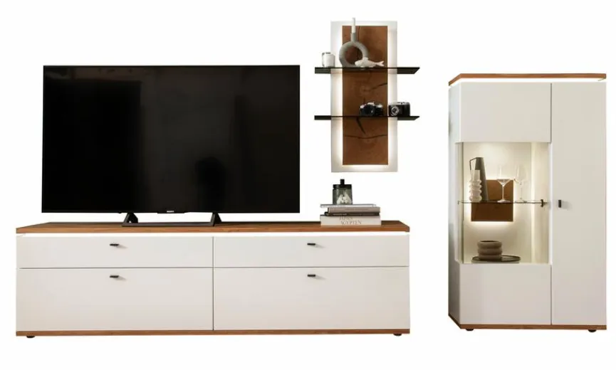 - Bestehend aus TV-Lowboard, Wandregal und Highboard