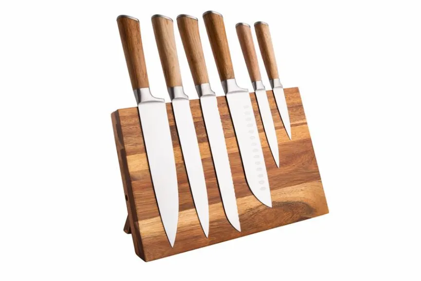 - Artikel beinhaltet je 1x Kochmesser 34 cm, Brotmesser 33,8 cm, Aufschnittmesser 33,7 cm, Santokumesser 31,2 cm, Allzweckmesser 24,5 cm, Pariermesser 20,4 cm und Messerblock Eiche magnetisch