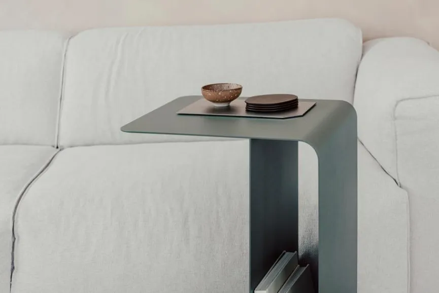 Mit dem Beistelltisch Cosmo beweist die Firma Metallbude, dass auch minimalistisches Design ganz schön raffiniert gestaltet werden kann. Der Clou dieses Abstelltisches ist, dass Sie ihn je nach Lust und Laune sowohl vertikal als auch horizontal aufstellen können. Ob beispielsweise als Nachtkonsole neben Bett oder als Ablagefläche vor dem Sofa – der Beistelltisch Cosmo wirkt an jedem Ort stylisch.