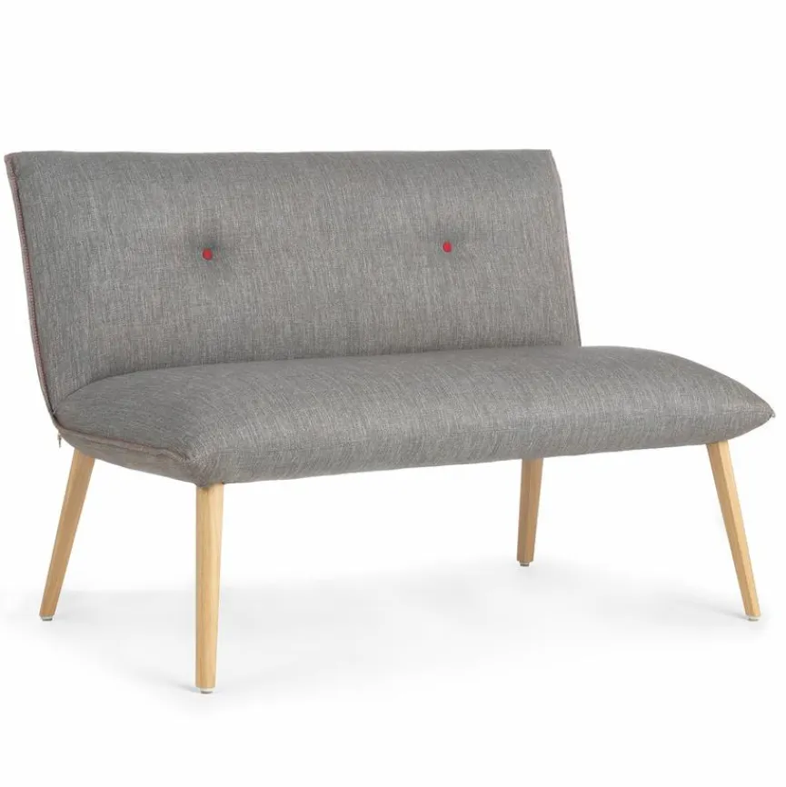 Die minimalistische, wunderbar leicht wirkende Bank Soda von Mobitec stellt ein bequemes Möbelstück dar, das Sie beispielsweise am Esstisch platzieren können. Auf der angenehm gepolsterten Sitzbank lässt man sich gerne nieder, um eine leckere Mahlzeit einzunehmen oder um eine gemütliche Ruhepause zu genießen. Bunte Nähte und farblich passende Knöpfe runden das attraktive Design der Bank Soda ab.
