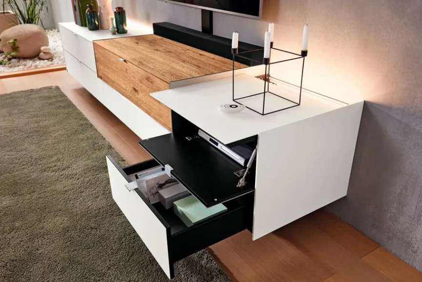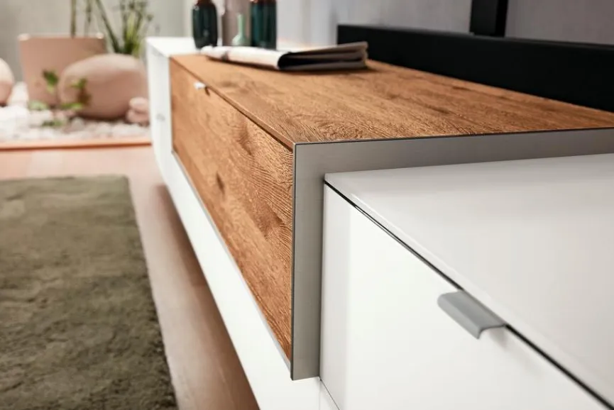 Mit dem Lowboard Q-Media 2.0 von Musterring schaffen Sie einen echten Blickfang in Ihren Räumlichkeiten. Das Sideboard ist sehr modern ausgeführt und lässt sich auch am besten mit Interieur in diesem Stil kombinieren. Neben dem zweckmäßigen Nutzen als Standort für Ihren Fernseher schafft das Lowboard Q-Media 2.0 auch Stauraum für Bücher, DVD’s oder Schallplatten.