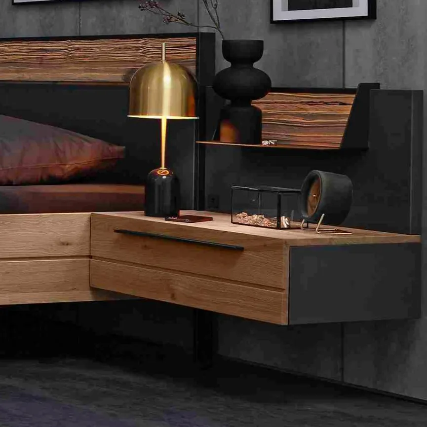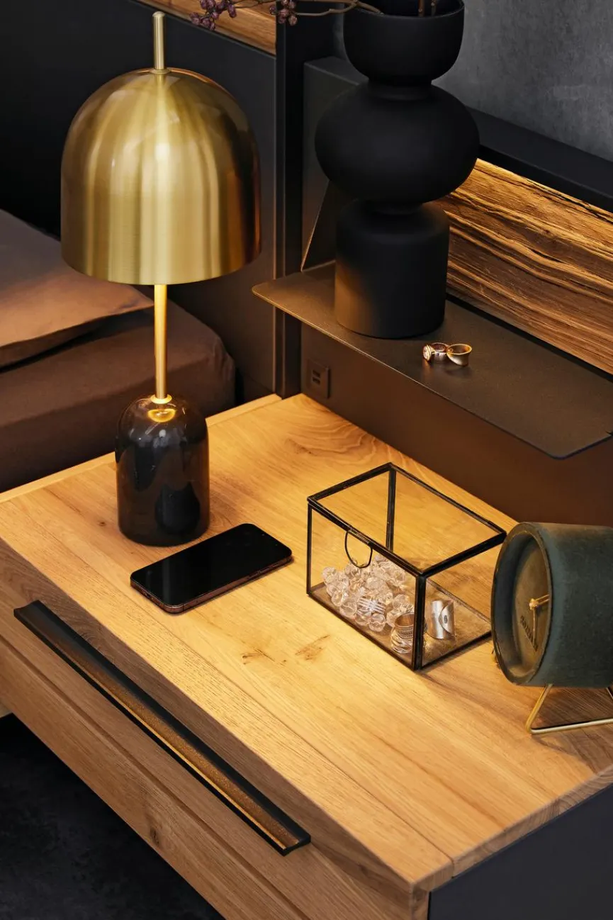Die von Musterring hergestellte Nachtkonsole Joline bietet Ihnen die Möglichkeit, neben Ihrem Bett griffbereit kleinere Gegenstände zu verstauen oder die Bettlektüre abzulegen. Optisch überzeugt der Nachttisch mit klaren Formen und einem ansprechenden Materialmix aus Metall und Holz. Und weil die hochwertige Nachtkonsole Joline von Musterring schwebend angebracht wird, entsteht im Raum ein Gefühl von aufgeräumter Leichtigkeit.