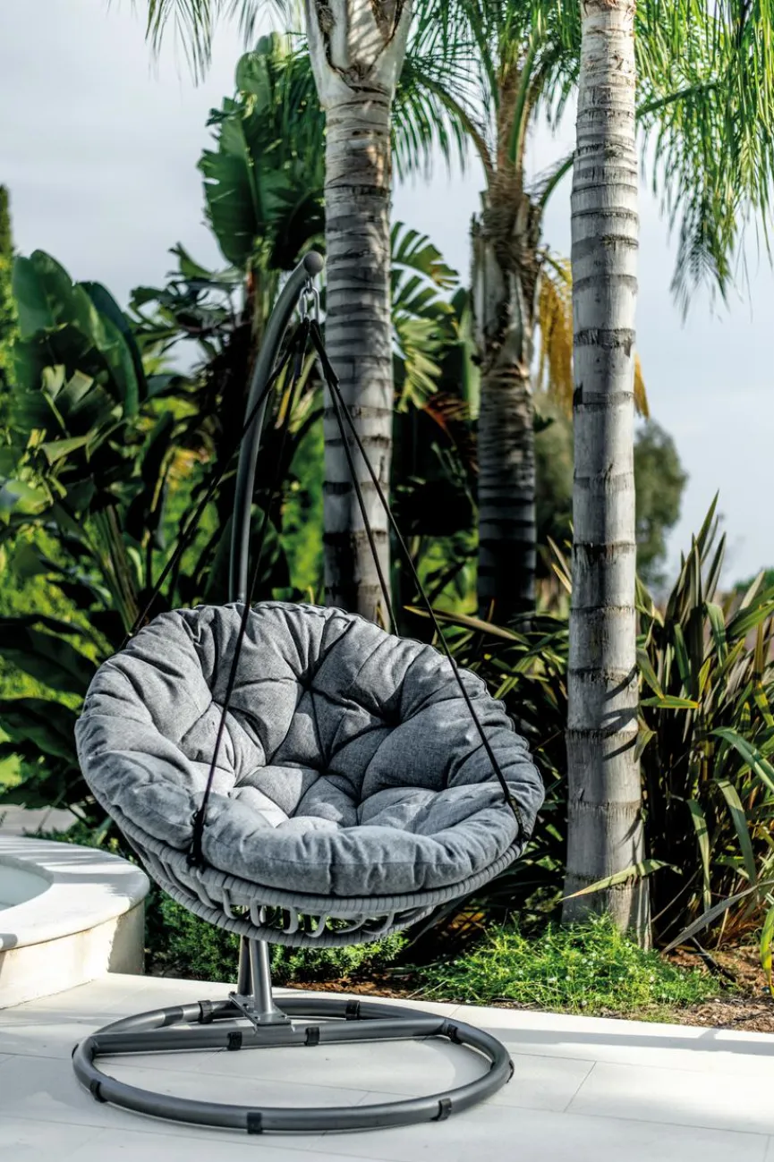 Wer beim Relaxen Wert auf Design und Funktionalität legt, trifft mit dem Hängesessel Ovo aus dem Hause MWH genau die richtige Wahl. Der schicke Hängestuhl begeistert vor allem durch seinen aparten Materialmix, der ihn sowohl auf der Terrasse als auch im Wintergarten zum attraktiven Stilhighlight macht. Außerdem lädt der Hängesessel Ovo mit seinem kuschelweichen Polster zum Entspannen und Träumen ein.