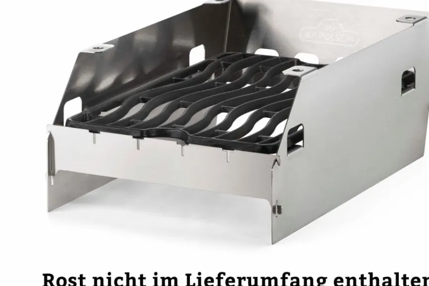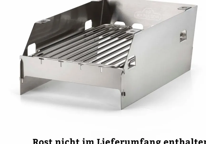 - Der Grillrost kann in drei weitere Positionen verstellt werden, Grillrost nicht im Lieferumfang enthalten