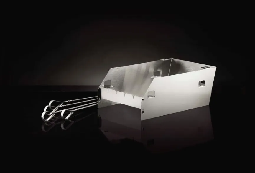 - Zudem ist eine Spieß-Halterung integriert, die es ermöglicht über der SIZZLE ZONE™ 4 Grillspieße ohne direkten Kontakt zum Rost zu grillen