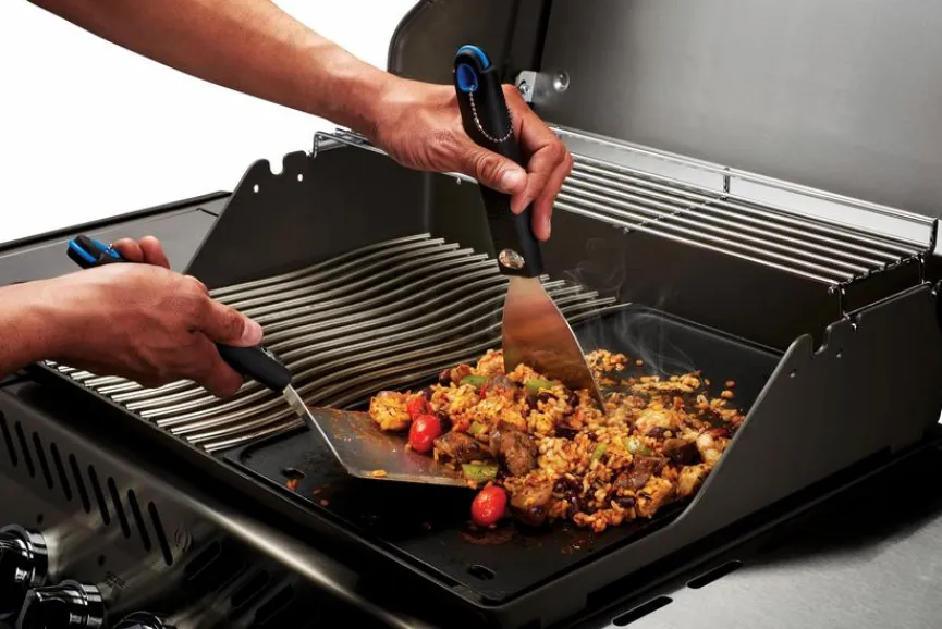 Die ergonomischen Napoleon® Spatel aus hochwertigem Edelstahl sind ideal für ein einfaches und sauberes Arbeiten auf den Napoleon® Planchas und Gussplatten.
