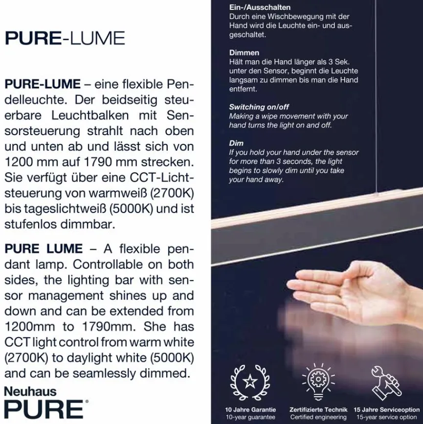 - Mit Sensordimmer zum Dimmen, Einstellen der Farbtemperatur von 2.700 bis 5.000 Kelvin und getrenntem Steuern von Up- und Downlight