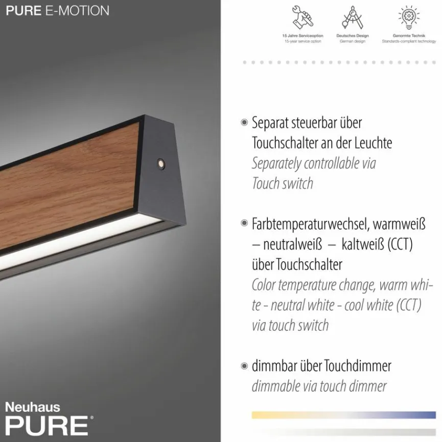 - mit Tastdimmer zum Dimmen, Einstellen der Farbtemperatur (2.200 bis 5.000K) und Schalten von Up- und Downlight