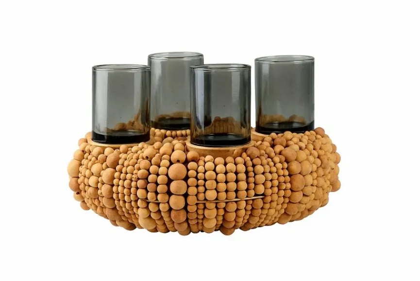Eine stilvolle Alternative zum herkömmlichen Kranz aus Tannenzweigen ist der Adventskranz Beads. Der Kranz aus Holzperlen mit schwarzen Kerzenhaltern aus Glas ist ein Hingucker auf dem Wohnzimmertisch und passt ins Wohnzimmer im Bohostil ebenso wie in einen zeitgemäß eingerichteten Wohnraum. Mit Blick auf den Adventskranz Beads im natürlichen Design gelingt eine besinnliche Entspannung bei einem guten Glas Tee im Kerzenschein.