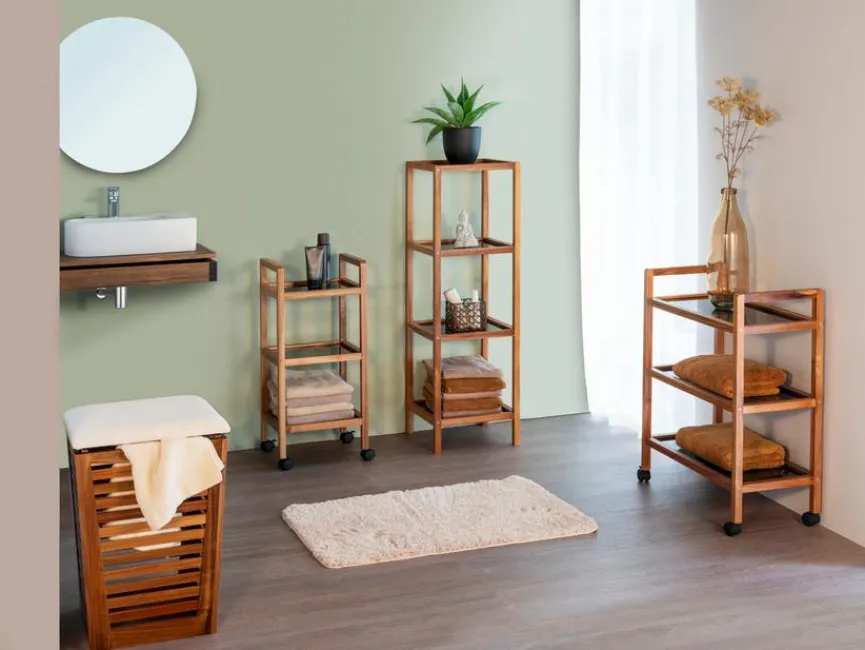 Das Badregal Fondi von WENKO ist die perfekte Lösung, um Ihr Badezimmer funktional zu organisieren. Mit seiner stabilen Konstruktion sorgt das Badregal Fondi für sicheren Halt, während das moderne Design jede Einrichtung stilvoll ergänzt. Genießen Sie eine aufgeräumte und harmonische Atmosphäre in Ihrem Badezimmer mit diesem Badezimmerregal.