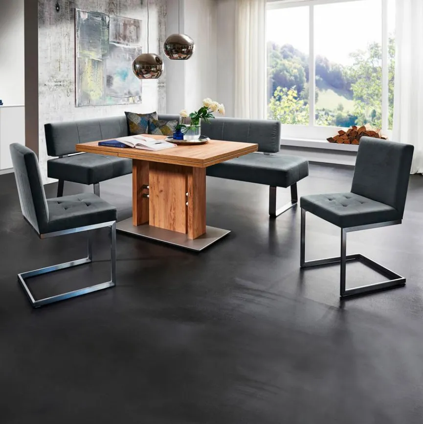 Die modern gestaltete Eckbank Spider ist nicht nur funktionell, sondern ein echtes Highlight in der Einrichtung. Mit dem schicken Stoffbezug und der dynamischen Formensprache erhält das Möbel ein attraktives Äußeres. Zudem sitzt man auf der Eckbank Spider dank der hochwertigen Polsterung und der bequemen Rückenlehne sehr komfortabel.