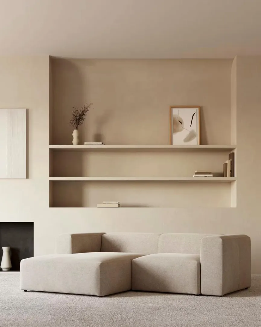 Das Ecksofa Blok von Kave Home ist eine vorzügliche Option, wenn Sie es modern und minimalistisch in Ihrem Zuhause lieben. Puristische Kubusformen im großen Format und ein Chenille-Bezug verhelfen der Eckcouch zu ihrem markanten Erscheinungsbild. Zu Interieur im sachlichen Chic passt das Ecksofa Blok geradezu perfekt.