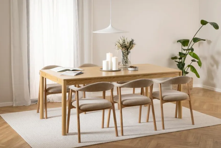 Der Esstisch Atlantic aus dem Hause Actona lädt zum geselligen Beisammensein und Genießen ein. Eine Platte mit abgerundeten Ecken und Beine mit rundem Querschnitt verleihen dem Esszimmertisch einen Look, der Harmonie und Gemütlichkeit ausstrahlt. Ergänzen Sie den Esstisch Atlantic mit schlicht designten Holzstühlen im puristischen Nordic-Stil!