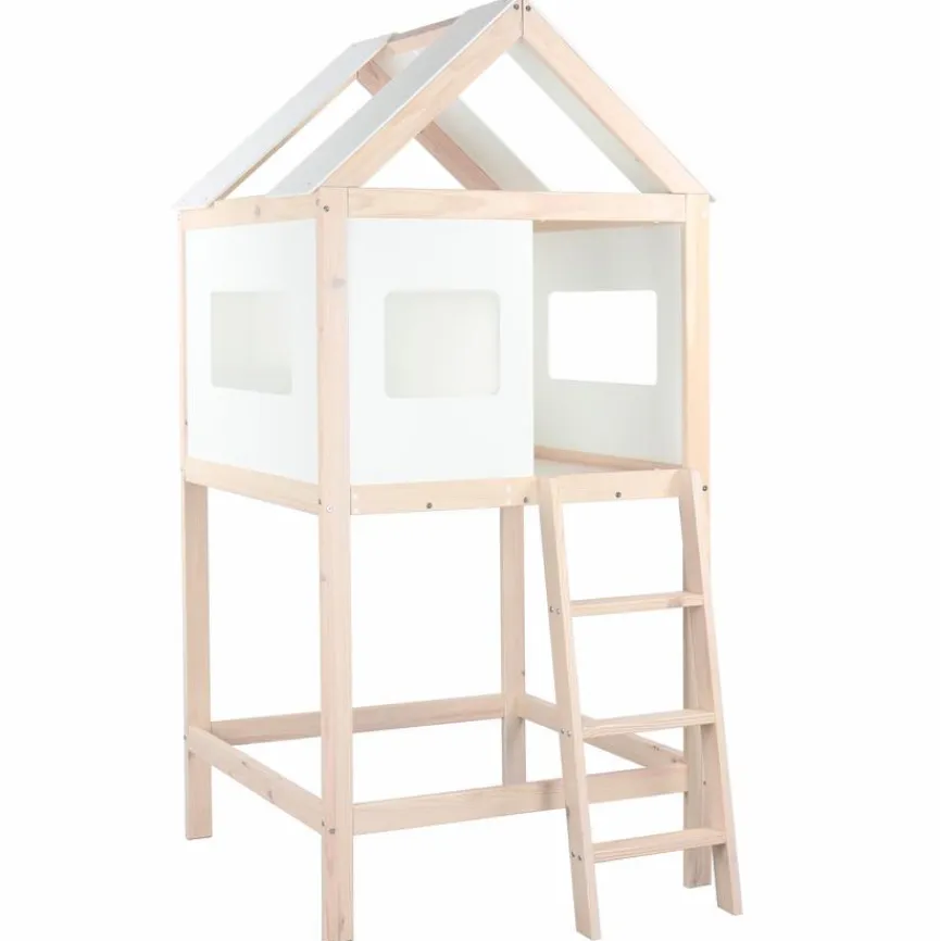 - Durch Weglassen einer der unteren, langen Verbindungsstreben passt das Bett Tower 90 x 200 cm, Artikelnummer 3842246-00001 unter den Baumhaus-Aufsatz