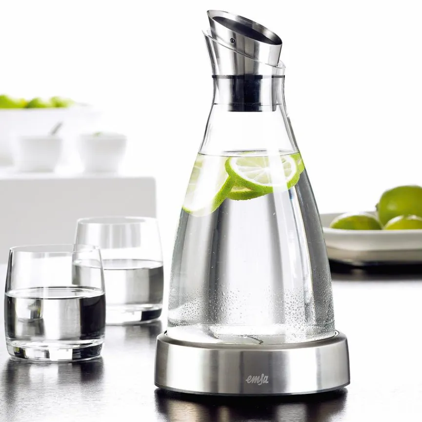 Im Sommer sind gekühlte Getränke eine Wohltat. Die Karaffe Flow von Emsa hält Getränke dank des integrierten Kühlakkus im Sockel bis zu 4 Stunden kühl. Mit dem Ausgießer, der mit einer automatischen Verschlusskappe versehen wurde, ist das Einschenken mit der Karaffe Flow von Emsa besonders komfortabel.