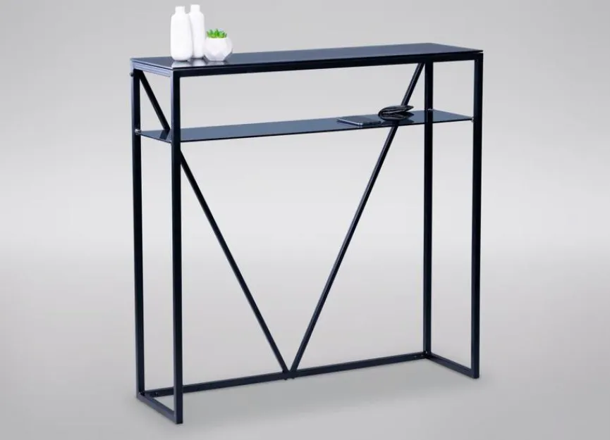 Der bezaubernde Konsolentisch Saphira bietet im Flur oder Eingangsbereich eine willkommene Fläche für das Deponieren von Schlüsseln, Handschuhen oder anderen Kleinigkeiten. Mit seinem schmalen Format passt dieser aparte Beistelltisch jedoch auch an Wände weiterer Wohnräume, wo er ebenfalls begehrten Platz für Bücher, eine Lampe, Kerzen oder Gefäße schafft. Dank seiner charmant gekreuzten Streben avanciert der Konsolentisch Saphira zum attraktiven Akzent und Stil-Statement modernen Wohnens.