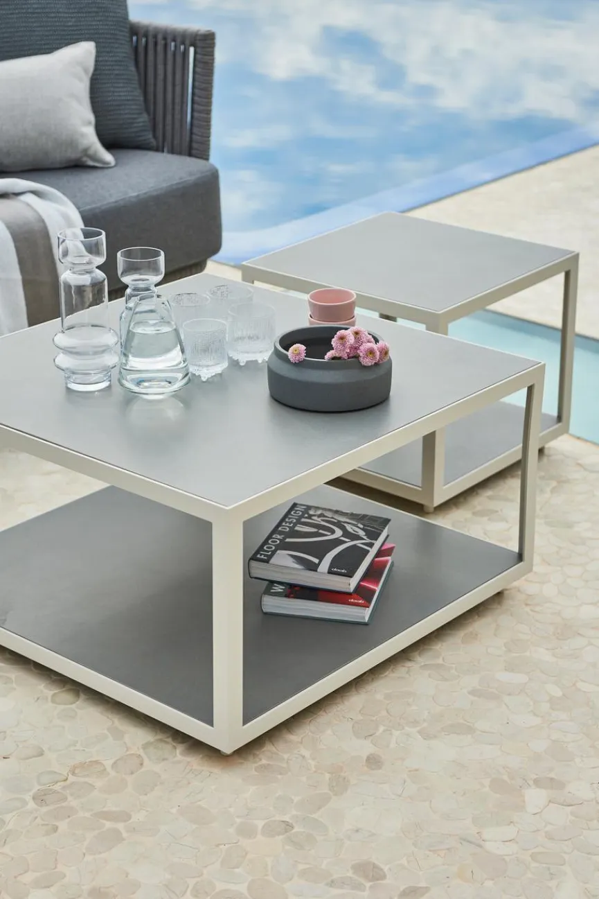 Mit seinem cleanen, zeitlosen Design ist der weiße Loungetisch Level von Cane-line eine ideale Ergänzung zu jeder Art von Sitzgarnitur oder Wohnlandschaft. Ob zum Chillen oder beim gemütlichen Beisammensein mit Freunden – dieser Beistelltisch bietet auf zwei Ebenen Abstellfläche für beispielsweise Getränke, Snacks oder Lesestoff. Der Cane-line Loungetisch Level in Weiß hält im Exterieur oder im Interieur alles griffbereit, was das Leben angenehmer macht.