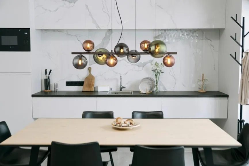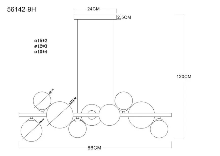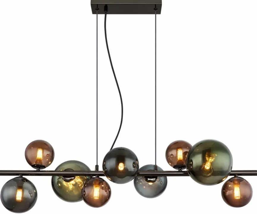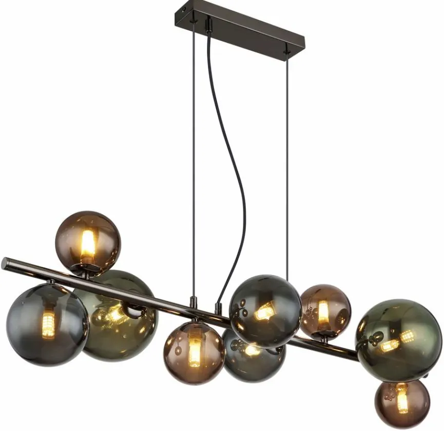 Mit der extravaganten Pendelleuchte Riha von Globo runden Sie Ihr modernes Einrichtungskonzept auf perfekte Weise ab. Dabei sorgt die Pendellampe mit ihren neun Lichtquellen für besonders angenehme Helligkeit. Die zart anmutenden kugelförmigen Schirme machen die Pendelleuchte Riha aber auch im ausgeschalteten Zustand zu einem echten Blickfang.