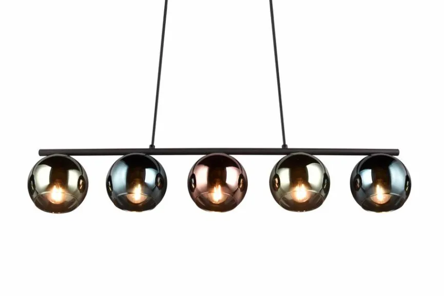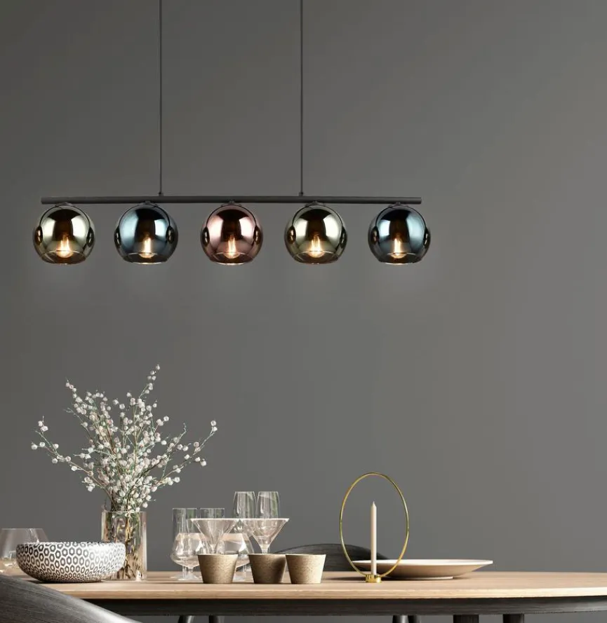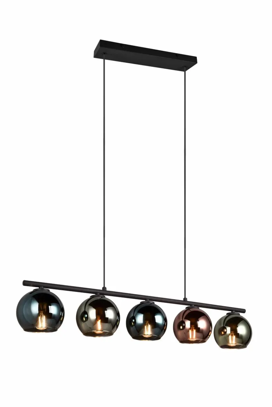 Mit fünf kugelförmigen, formschön gestalteten Gehäusen und der grazilen, klar strukturierten zweiteiligen Aufhängung setzt die Pendelleuchte Sheldon von Reality Leuchten ein geschmackvolles Statement. Darüber hinaus kreiert diese Pendellampe in Ihren Räumlichkeiten natürlich ungemein stimmungsvolle Lichtverhältnisse. Auch in puncto Verarbeitung kann die stabile Pendelleuchte Sheldon auf ganzer Linie überzeugen.