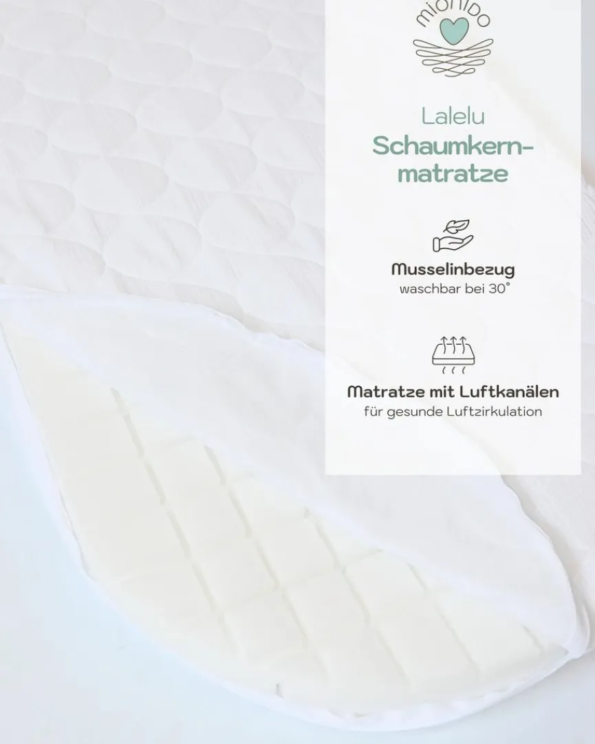 - Kaltschaummatratze „Lalelu“ inkl. vertikalen Lüftungskanälen zur verbesserten Luftzirkulation