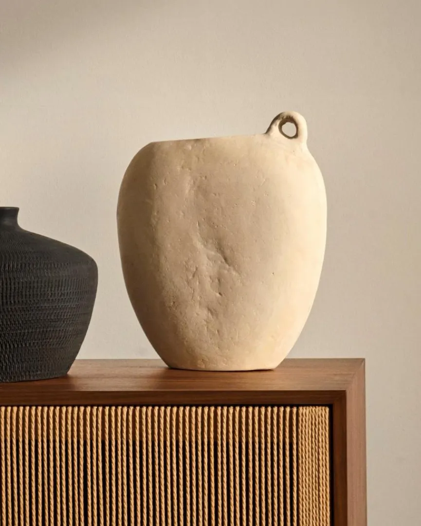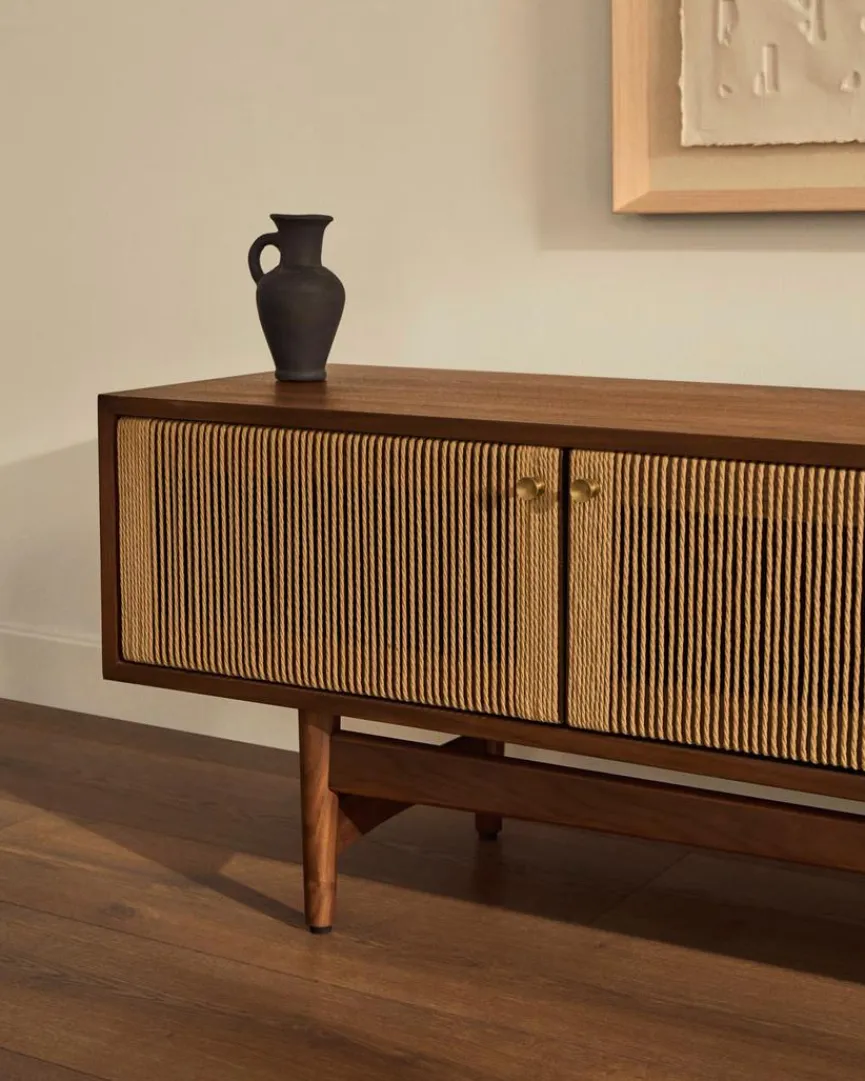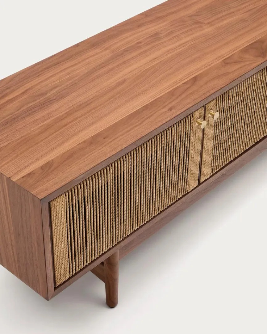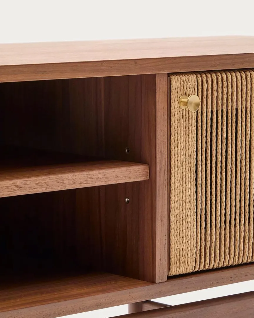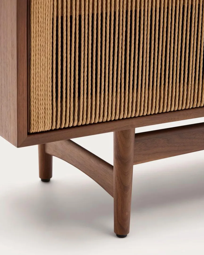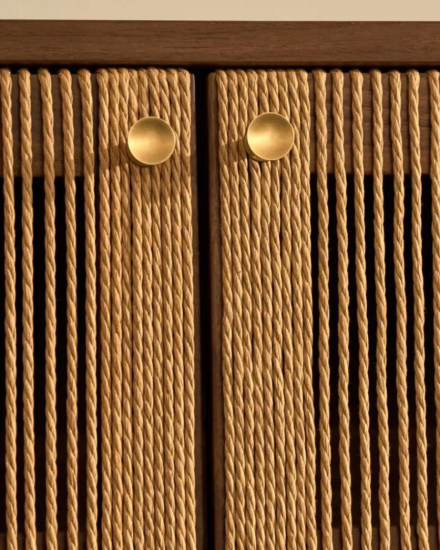 - Front aus Papierseil handgeflochten in natur, Griffe aus Messing