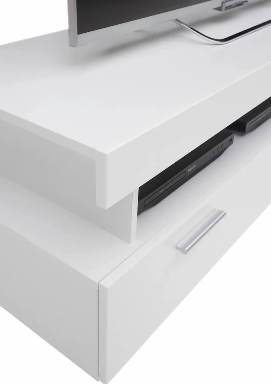 - Korpus aus Holzwerkstoff (Spanplatte) mit Dekorfolie in weiß matt, Front aus Holzwerkstoff (MDF) mit Tiefziehfolie in hochglanz weiß