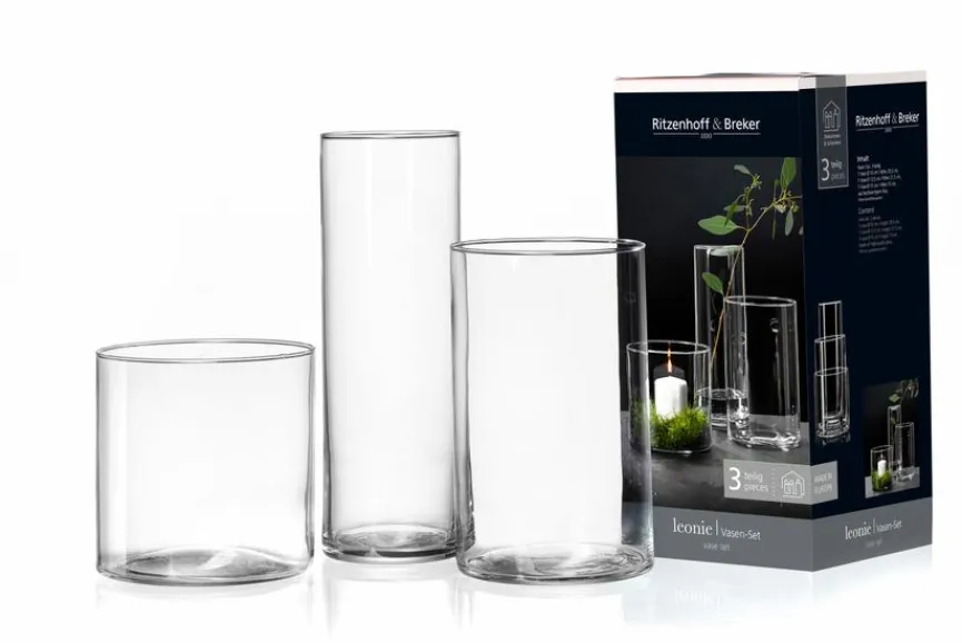 Transparenz und klassische Zylinderformen – das Set Vase Leonie 3tlg. von Ritzenhoff & Breker entfaltet je nach Art der Pflanzen, denen es als Basis dient, eine ganz individuelle Wirkung. Dank der unterschiedlichen Höhen und Durchmesser finden Sie für jede Art von Strauß die passende Blumenvase. Das Set Vase Leonie 3tlg. setzt zum Beispiel Lilien, Rosen, Frühblüher und Wiesenblumen ideal in Szene.
