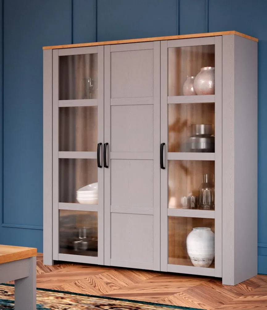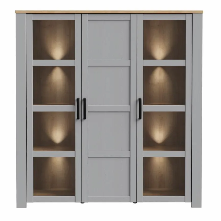 - Mit 3 Türen (2 Türen davon mit Glaseinsatz) und 9 Böden